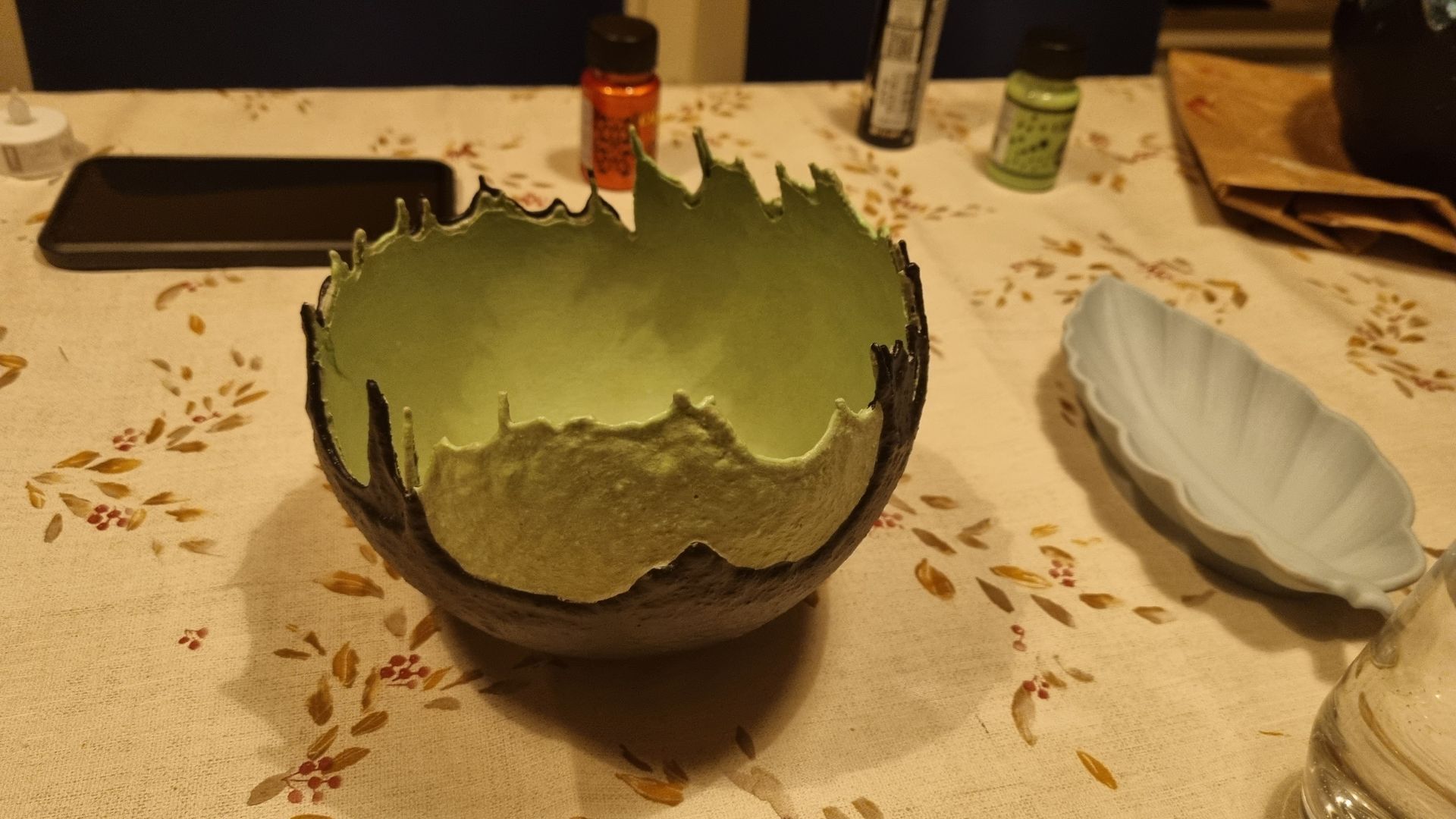 Momenteel experimenteer ik met Glow in the dark verf. Het is moeilijk spul om aan te brengen en het kost veel tijd om het effect tot uiting te laten komen. Ik wil het voor meer projecten gaan gebruiken, maar de eerste resultaten zijn positief! Zie de foto's hieronder. Lijkt wel een alien-ei?
